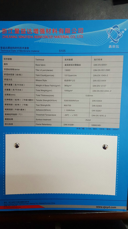 3、选择膜布的表面处理,FVDF表面处理的膜布3-5年内有雨水冲涮自洁功能。acrylic表面处理膜布不能自洁,可以人为洁净。
